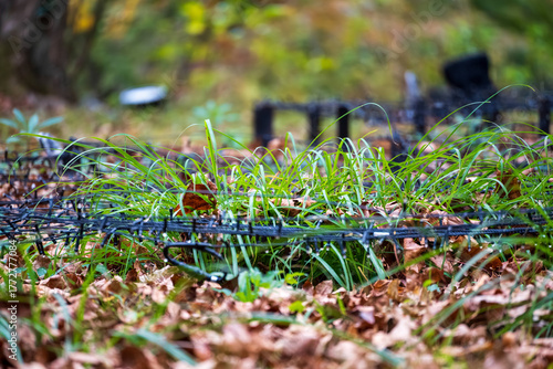 Obraz premium LEDライトのケーブルの隙間から伸びる草