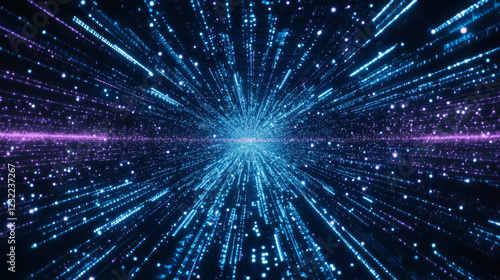 © Sahraya, Fototapeta premium Led wall video screen with blue and purple dot lights on black background. Vector background with grid pattern of pixels for led display. Digital panel with mesh of diode lamps