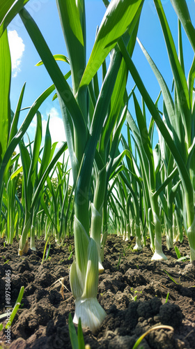 Obraz premium Leek plants growing in a field under