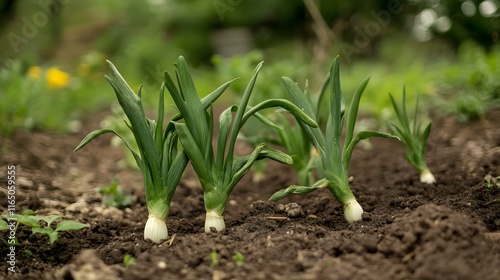 © Ahesan, Obraz premium Leek plants growing outside