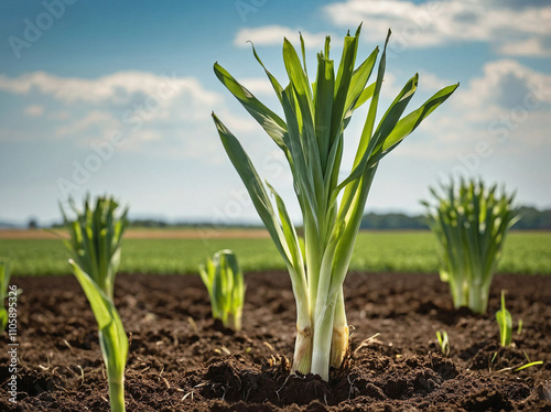© AungMyintMyat, Obraz premium Leeks Growing in a Field