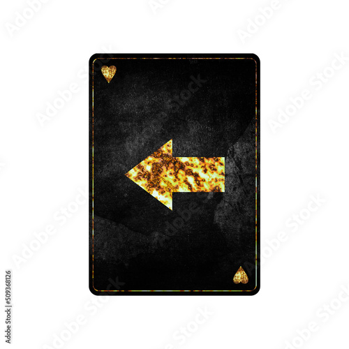 © vallerato, Obraz premium Left Arrow. Alphabet on vintage playing cards. Isolated on white background.