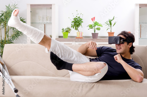 Obraz premium Leg injured young man suffering at home