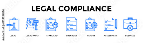 © Loviana, Obraz premium Legal Compliance Icon Set Collection Pack Banner Web Vector Illustration Concept Containing Ensure Compliance With Structured Documentation And Governance