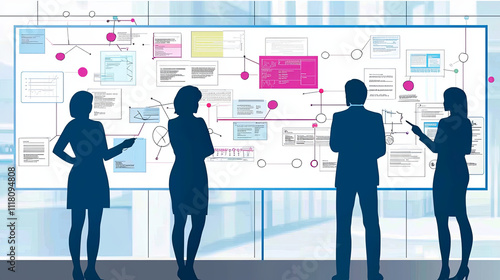 Obraz premium Legal team analyzing compliance strategies in modern office space infographic...