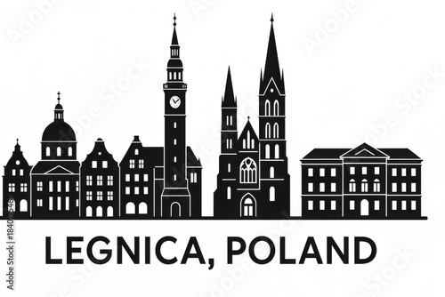 Fototapeta premium Legnica. Poland Panorama.black and white logo illustration
