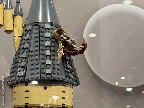 © Marina Chernivetskay, Obraz premium Lego castle tower with dragon climbing the roof
