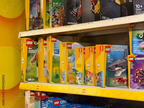 © Marina Chernivetskay, Naklejka premium Lego creator sets on store shelf