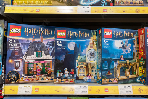 © 8th, Fototapeta premium Lego Harry Potter building kits at the Lego Store. A box collection set of the Harry Potter series. Minsk, Belarus - March 22, 2024