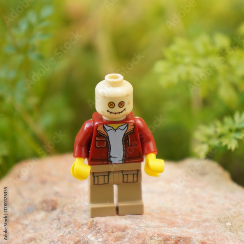 © Everyday Frame, Obraz premium Lego minifigure of a scarecrow with a stitched smile and button eyes