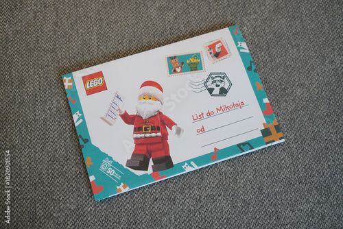 © Everyday Frame, Obraz premium LEGO Santa Claus Letter to Mikolaj on a Gray Background