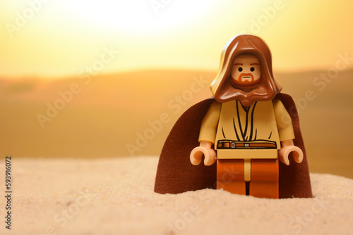 © Dan Race, Naklejka premium Lego Star Wars figure Obi Wan Kenobi on the desert planet Tatooine