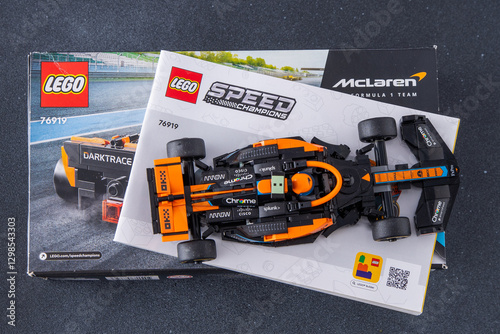 Naklejka premium LEGO Toy racing McLaren Formula 1 Car Champions 76919. Ukraine, Kyiv - January 8, 2025.