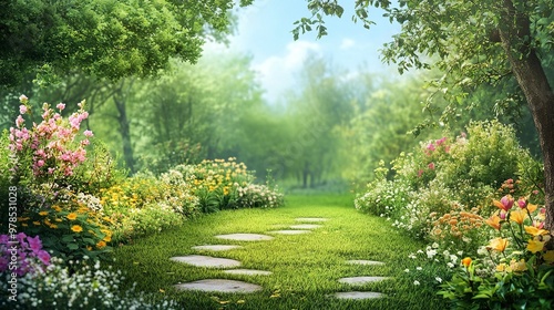 © Fathor, Obraz premium Lemo n garden, summer background.generative ai