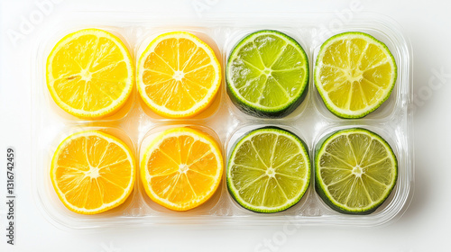 © Broccolini, Fototapeta premium lemon and lime slices, lemon slices isolated on white