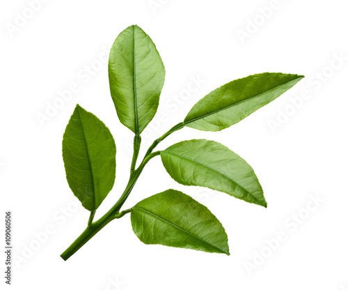 © azure, Fototapeta premium Lemon leaves isolated on white background