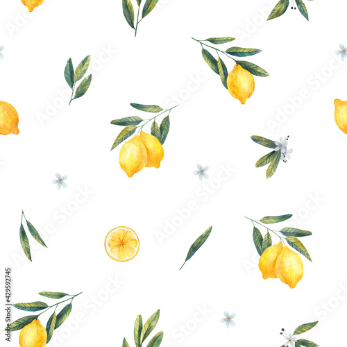 © Ilona, Obraz premium lemon seamless watercolor pattern, botanical