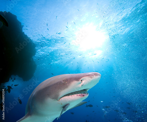 Fototapeta premium Lemon Shark and school of fish