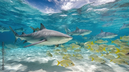 Obraz premium Lemon Shark Encounter: Underwater Adventure at Tiger Beach, Bahamas