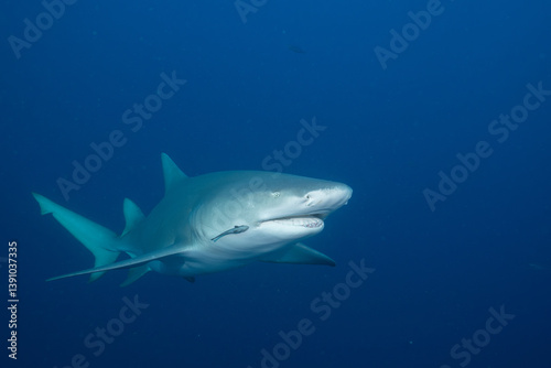 © Griffin, Fototapeta premium Lemon shark swimming in blue ocean