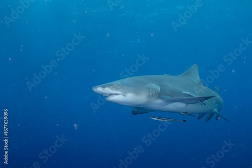 © Griffin, Fototapeta premium Lemon shark swimming in blue ocean