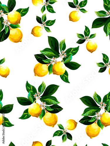 Obraz premium Lemon vector pattern. Seamless botanical illustration. Tenplate for bar,...