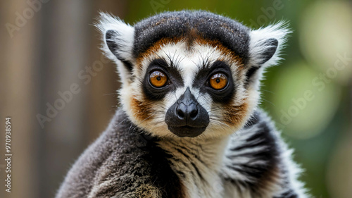 Obraz premium Lemur closeup showing large reflective eyes and fluffy face with plain...