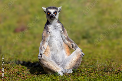 © perpis, Obraz premium Lemur doing yoga with serious expression