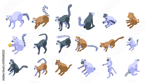 Fototapeta premium Lemur icons set. Isometric set of lemur vector icons for web design isolated...