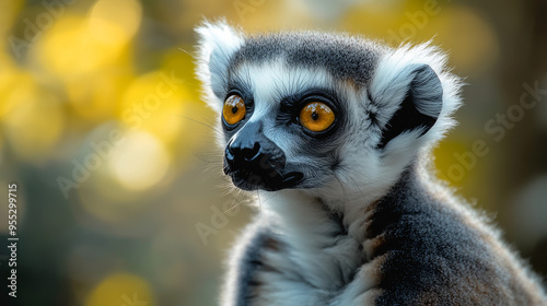 © Elmin, Obraz premium Lemur looking, Ring-tailed lemur (Lemur catta) wild portrait