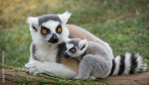 © juanorihuela, Fototapeta premium Lemur mom and her adorable baby