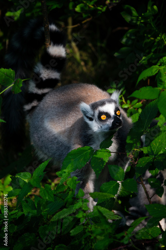© lapis2380, Fototapeta premium Lemur outdoors in the wild among the leaves.