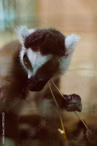 Obraz premium Lemur primate animal wildlife portrait closeup eating mammal captured in soft...