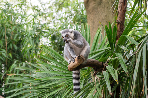 © Julia Jones, Fototapeta premium Lemur sitting among lush greenery on a tree branch in tropical habitat