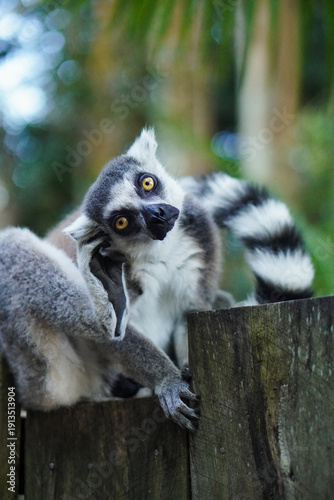© Nahisoka, Obraz premium Lemur Sitting and Scratching Its Head in the Australia Zoo