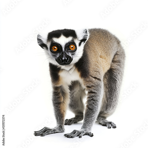 © Thanthara, Fototapeta premium Lemur standing on white background, looking curious