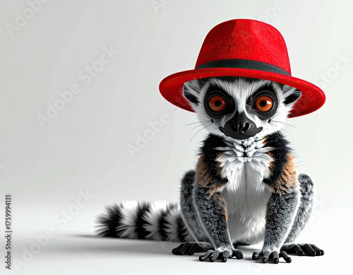 © Dr, Naklejka premium Lemur wearing red fedora hat
