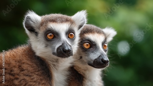 © Phatcharee, Obraz premium Lemurs interacting playfully in a lush forest habitat wildlife photography natural environment close-up view