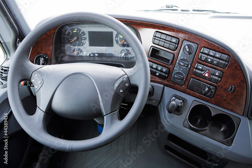 Fototapeta premium Lenkrad im Cockpit eines Lastwagen