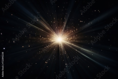 © Ameer, Naklejka premium Lens flare effect on black background: white sparkling light rays for creative design projects