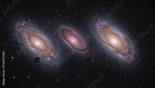 Naklejka premium Leo Triplet photographed through a composite of 64 stacked exposures; color-cooled imaging sensor; each shot lasting 300 seconds.