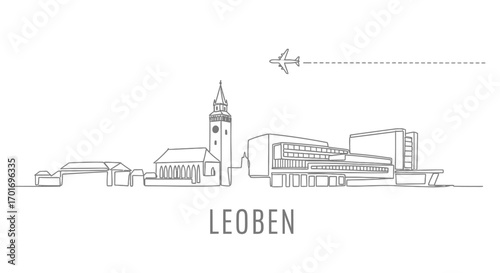 Fototapeta premium Leoben Skyline Minimalist Austria Cityscape.