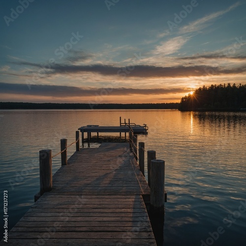 © Amjad, Fototapeta premium Leonardo_Kino_XL_Evening_on_the_Dock_A_tranquil_dock_scene_wit_0