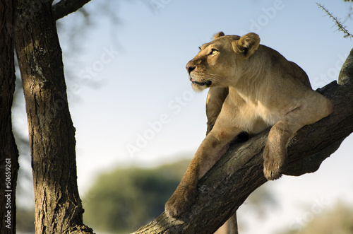 © zanarinilara, Naklejka premium leonessa sull albero con sguardo al cielo