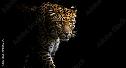 © Jenjira, Obraz premium leopard, big cat, feline, Majestic Leopard in the Dark