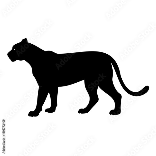 © QuickDesign24, Obraz premium Leopard Black Silhouette Vector Art on Transparent Background for Creative Projects