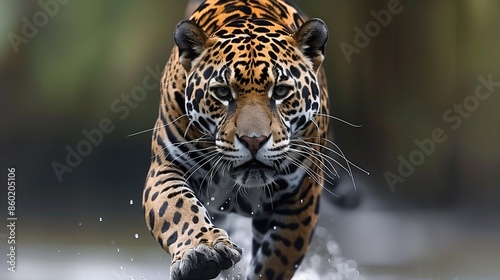 © Matt, Fototapeta premium Leopard Charging Through Water with Intense Focus