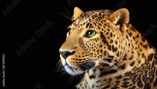 Obraz premium Leopard close up head on black background