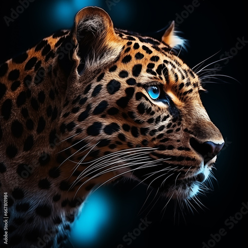 Fototapeta premium leopard close up on dark background, in the style of fine art photography