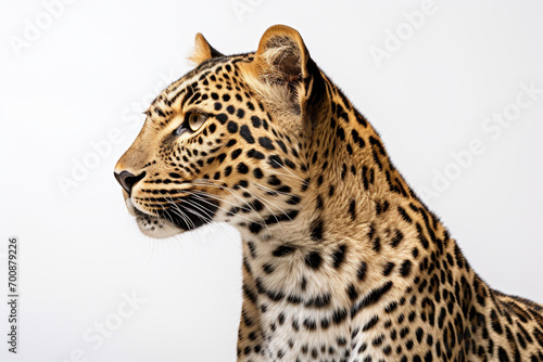 © Laser Eagle, Fototapeta premium Leopard close-up portrait on a white background.